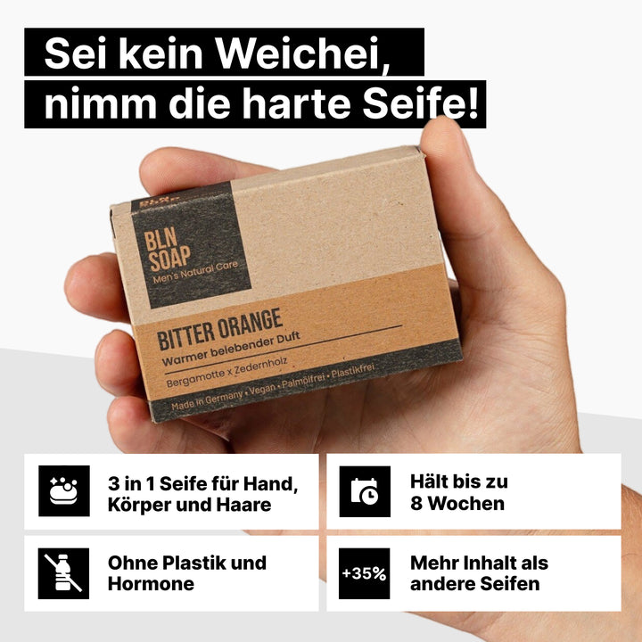 Seife passt zum Kiez: hart im Auftritt, sauber im Ergebnis. Riecht markant, wirkt stark. Angenehm herber Orangenduft.