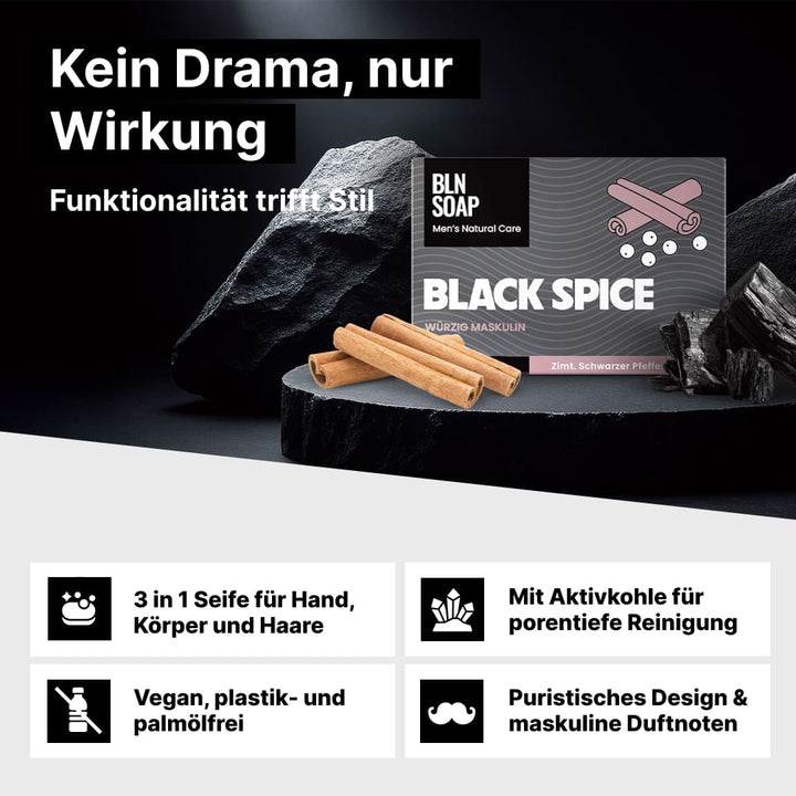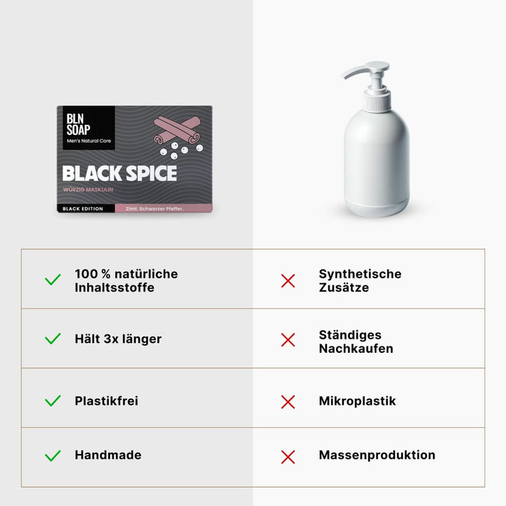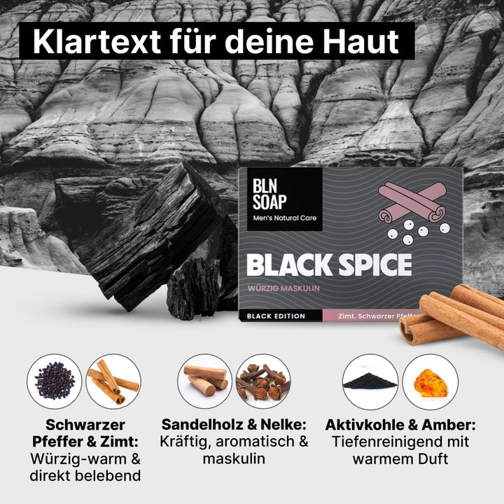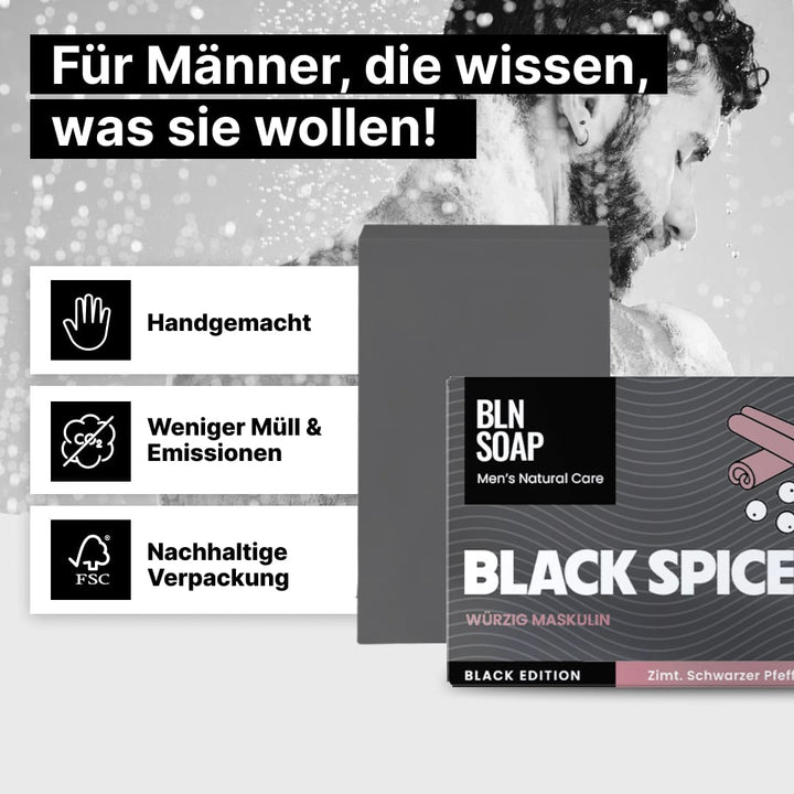 Black Spice ist perfekt, wenn du würzige Düfte magst und eine Seife mit Charakter suchst. Sie vereint Nachhaltigkeit, maskuline Eleganz und intensive Pflege in einem Stück Seife – ideal für Männer, die auffallen wollen.