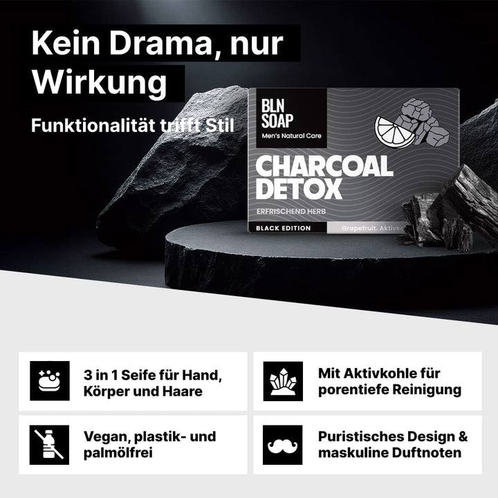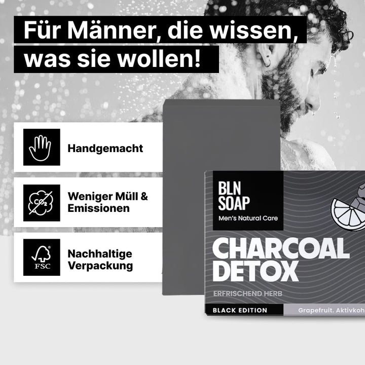 Die Charcoal Detox Seife ist die perfekte Wahl für Männer, die eine gründliche Reinigung brauchen. Mit Aktivkohle angereichert, befreit sie Haut und Poren von Schmutz, Öl und Unreinheiten. Der frische, maskuline Duft sorgt für Klarheit und Energie. Diese feste Seife für Männer wird nachhaltig in Holland gefertigt, ist plastikfrei verpackt und besteht aus natürlichen Inhaltsstoffen. Ideal nach Sport, Arbeit oder Outdoor-Abenteuern – Charcoal Detox gibt dir das Gefühl von echter Reinheit.
