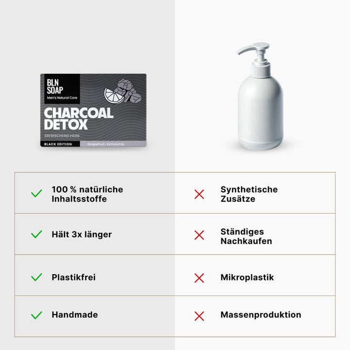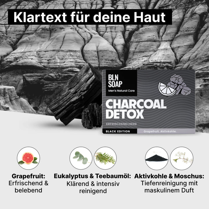 Wir setzen auf tiefenreinigende Pflege mit Aktivkohle – ohne schädliche Inhaltsstoffe, die in unseren Seifen nichts zu suchen haben.
